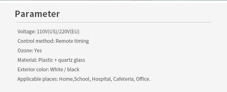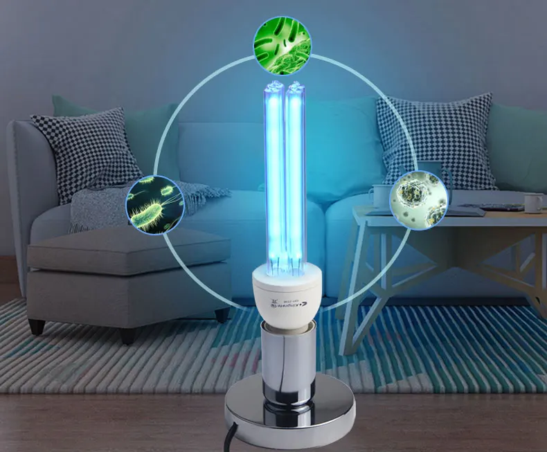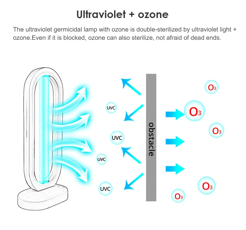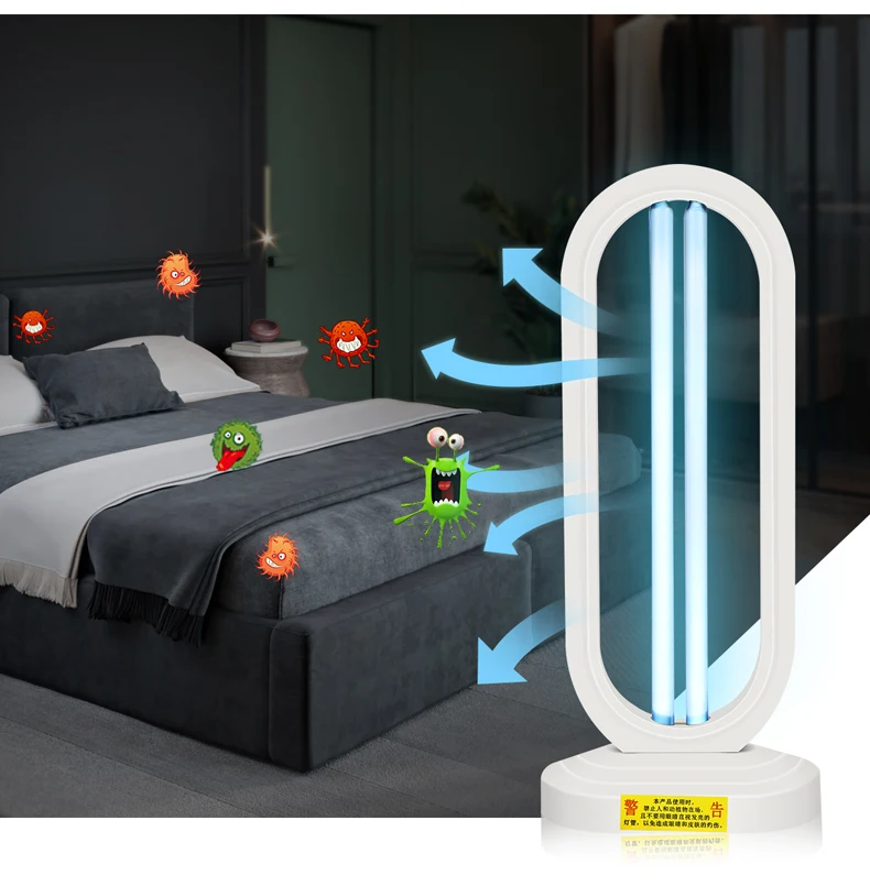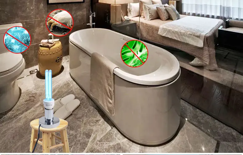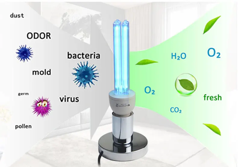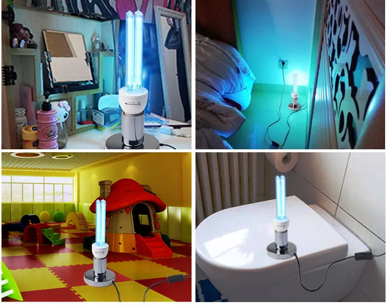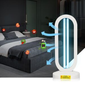 Kill Dust Mites: Dust mites are tiny creatures that are invisible to the naked eye, on the bed, pillow, sofa,carpet, they are everywhere in the house and make many harms: Dust mites bite people skin make itching and skin redness, let people can’t sleep and uncomfortable. This lamp’s UV-C ray is hundreds thmes stronger than sunshine, they can kill the dust mites immediately. Kill Bacterial: This lamp can easy kill bacterias include : mold, Staphylococcus aureus, E.coli, Pet parvovirus, influenza virus, etc. Ultraviolet light will break them down into water and oxygen. Remove odor: This lamp can remove odor just like the Smoky smell in the kitchen, musty smell in the bedroom, and the bad smell in washroom, shoes box, fridge, trash can, etc. UV-C ray can kill the bacteria which will cause odor, and the ozone will rapidly kill and oxidatively decomposes organic or inorganic odors substances. Clean air: Can break down tiny substances in the air, reduce allergens that can cause asthma and allergies, Kills contaminants that causes colds, flus, allergies, sinus infection, make the air fresher