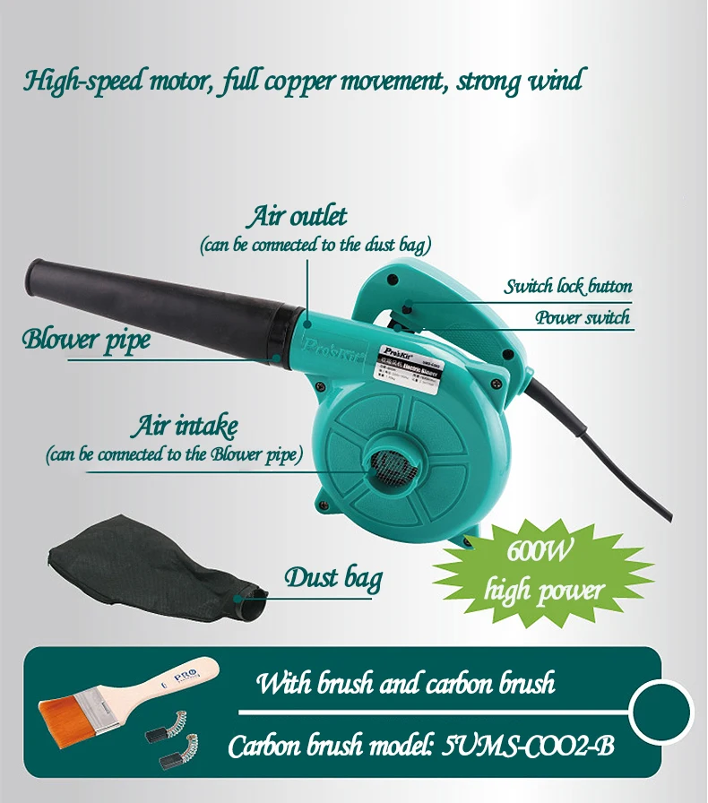 600W Electric Air Blower Vacuum Blowing Duster Pro’skit UMS-C002 Household Computer Dust Soplador Electric Blower cleaning tool