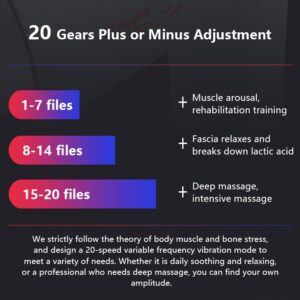 – Up to 3600 percussions per minute and 12 mm amplitude provides deep muscle relief, overall recovery, decreasing pain and increasing range of motion.