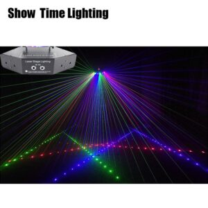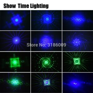 SHOW TIME 6 eyes Sector Laser Voltage: 110-240V,50/60Hz Power supply: 90W Patterns: 6 eyes and 16Patterns Exterior: Black Laser Source: Red-200MW Green 150mw Blue 120mw Work environment:Indoor 10-40 Visual effects: See Pictures and Video Play Modes: Sound Active,Auto,DMX 512,Master-Slave Control Modes: Manual,DMX 512 Function: stage Performance,Wedding,Club bar,Celebration of festivals and so on. G.W: 1.9kg Size: 35*25*17cm